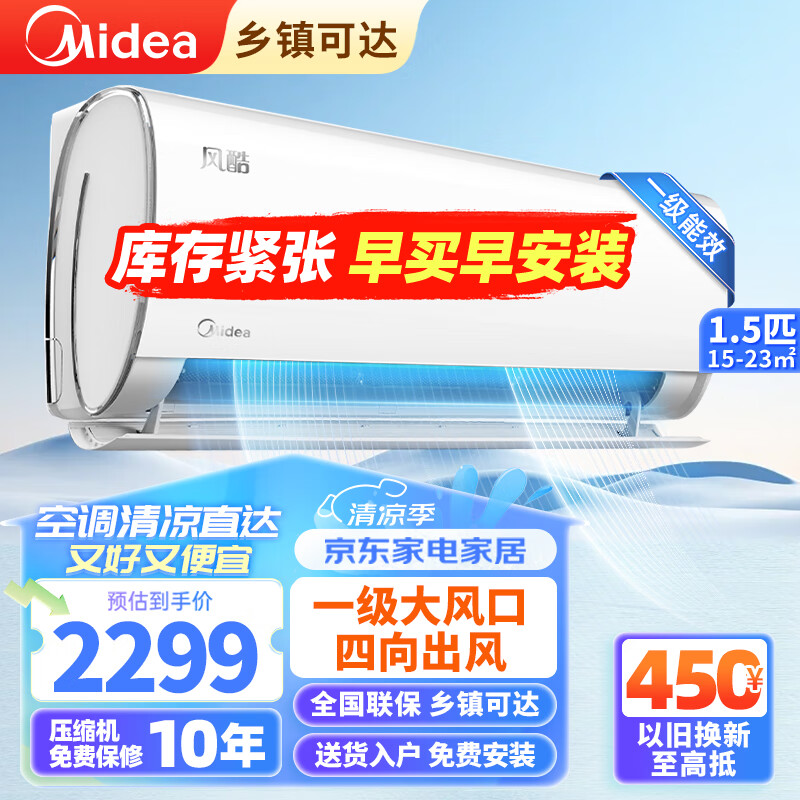 美的(Midea)空调挂机1.5匹 风酷新一级能效变频冷暖家用省电 卧室壁挂式空调 以旧换新KFR-35GW/N8XHC1Ⅱ智选价格:2399.00元!