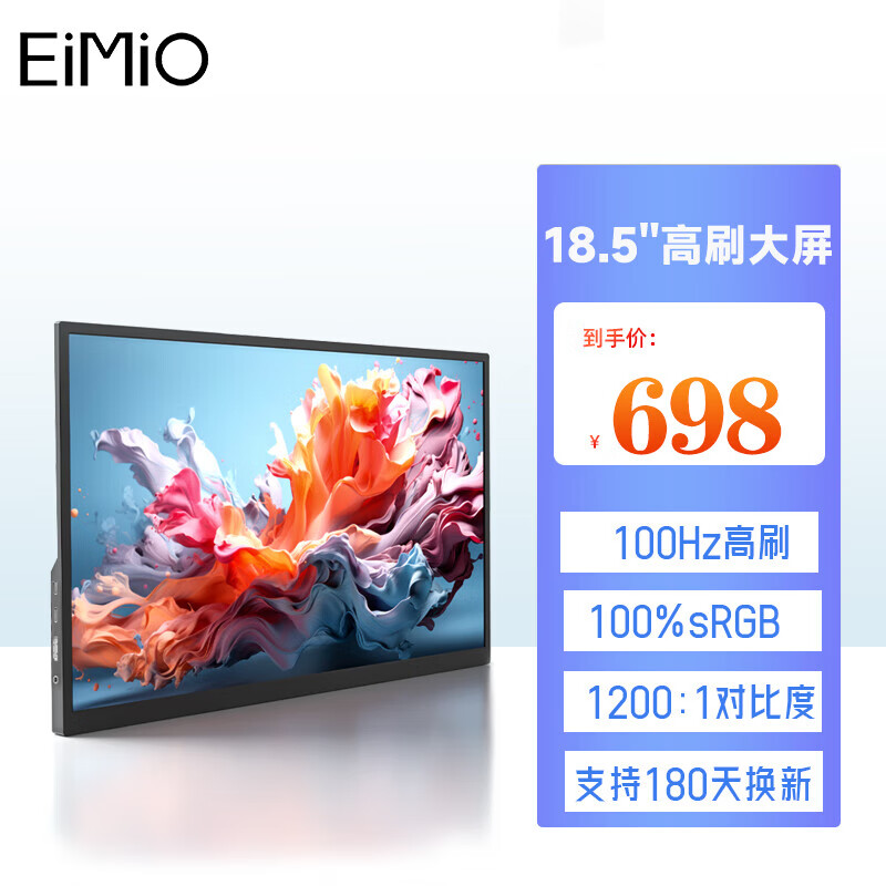Eimio便携显示器 18.5英寸【100Hz高刷】显示屏HDR电脑笔记本扩展屏switch手机PS4/5副屏移动外接屏E18W价格:898.00元!