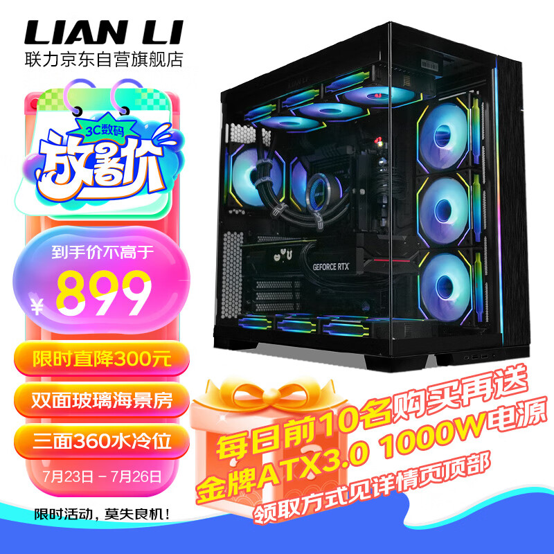 LIANLI联力包豪斯EVO全视版黑色 无立柱海景房台式电脑机箱 双面玻璃/EATX大箱/三面水冷位/支持4090显卡价格:899.00元!