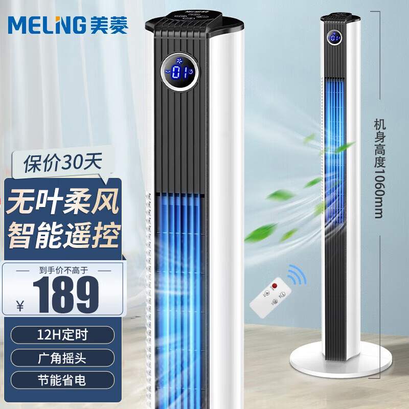 美菱MELNG 家用电风扇/卧室节能塔扇/智能遥控定时无叶风扇/轻音颜值塔扇 MPF-DZ0025【加高款】价格:189.00元!