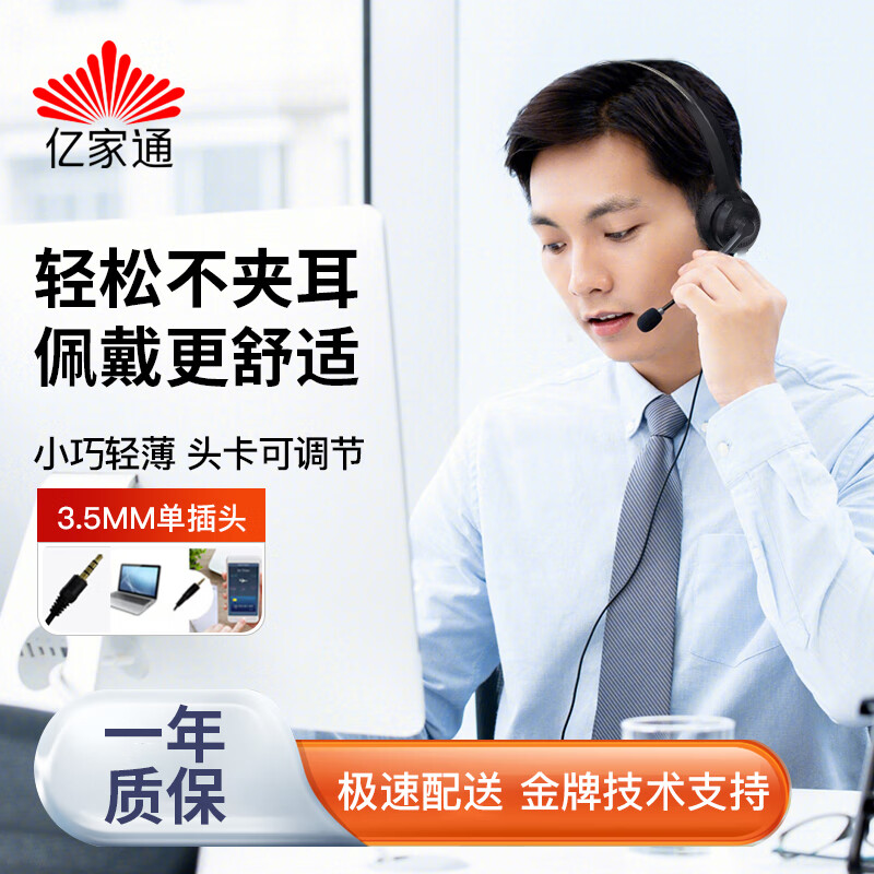 亿家通 单耳话务耳机Y300-3.5mm单插头 头戴式耳机/降噪电销耳麦/商务/移动办公通话直连手机/电脑价格:49.00元!