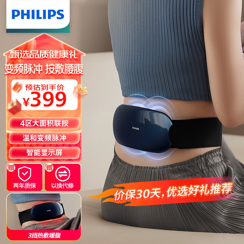 飞利浦(PHILIPS)腰部按摩器按摩仪 腰带多功能物理推揉 多点位变频按敷腰腹部按摩仪 送女朋友情人节七夕送礼3501B价格:439.00元!