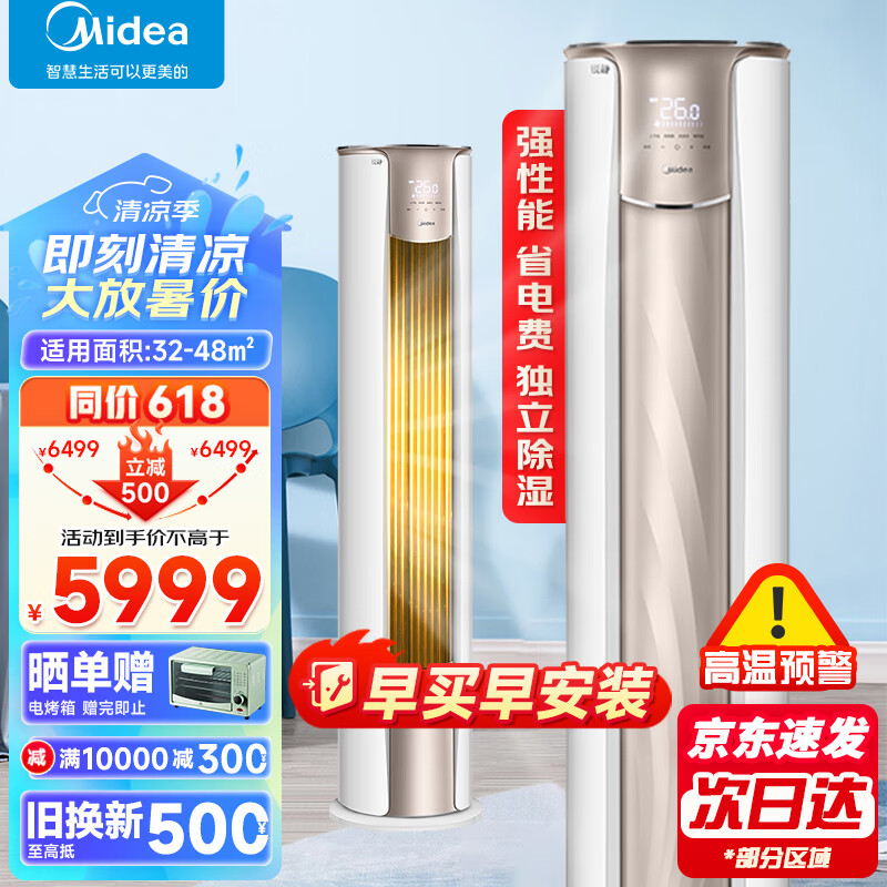 美的3匹 锐静二代 新一级能效变频冷暖 大风口自清洁智能家用客厅立式空调柜机 KFR-72LW/N8VHC1Ⅱ价格:5999.00元!