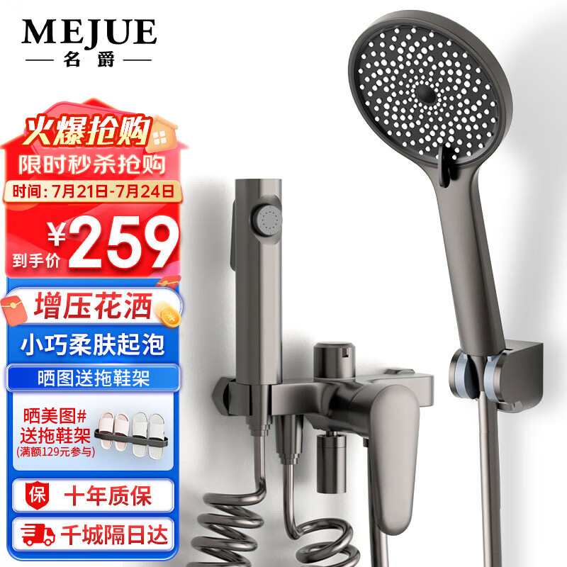 名爵(MEJUE)枪灰色卫浴花洒套装增压喷头黄铜龙头沐浴花洒浴室淋浴器Z-05215价格:269.00元!