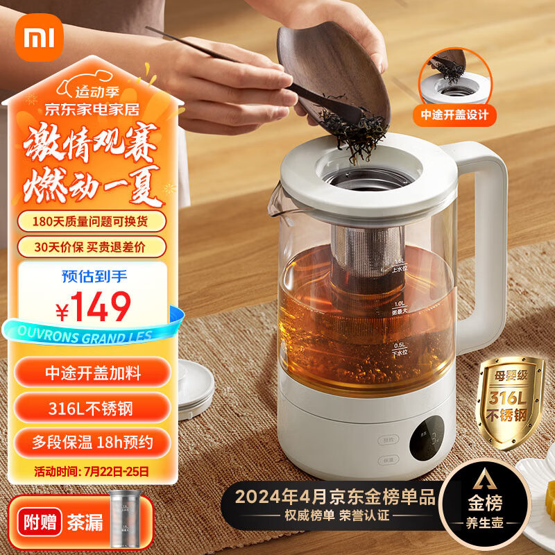 米家小米养生壶烧水壶煮茶壶器一体机 316L不锈钢 冲奶炖汤多功能 自动保温 家用办公室桌面S1 1.5升价格:149.00元!