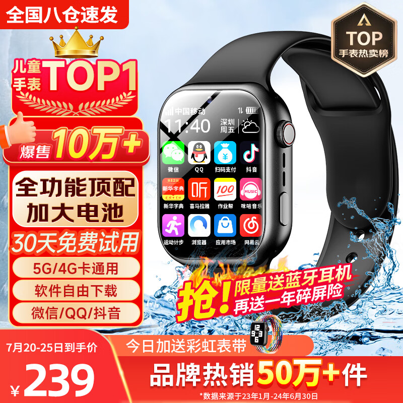 爱百分【无游戏长待机】儿童智能电话手表插卡5G4G卡通用wifi下载学生多功能精准定位青少年手表礼物 顶配版【电池加大+全功能可下载+微信抖音+GPS】 1.81大屏无游戏无广告价格:269.00元!
