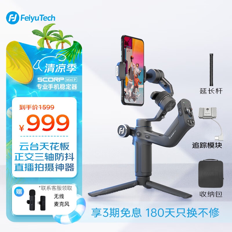 FeiyuTech飞宇蝎子MiniP 手机云台 Scorp miniP专业三轴防抖 提握一体 手持云台稳定器 手机稳定器 黑色套装价格:999.00元!