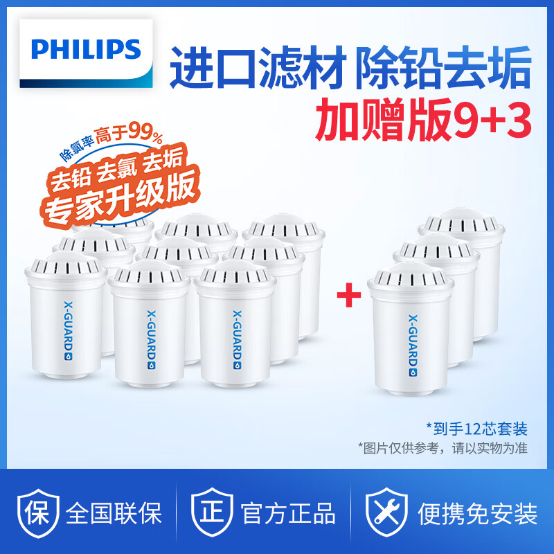 飞利浦(PHILIPS)家用滤水壶专家升级版原装净水壶滤芯WP3904(12支装)价格:379.00元!