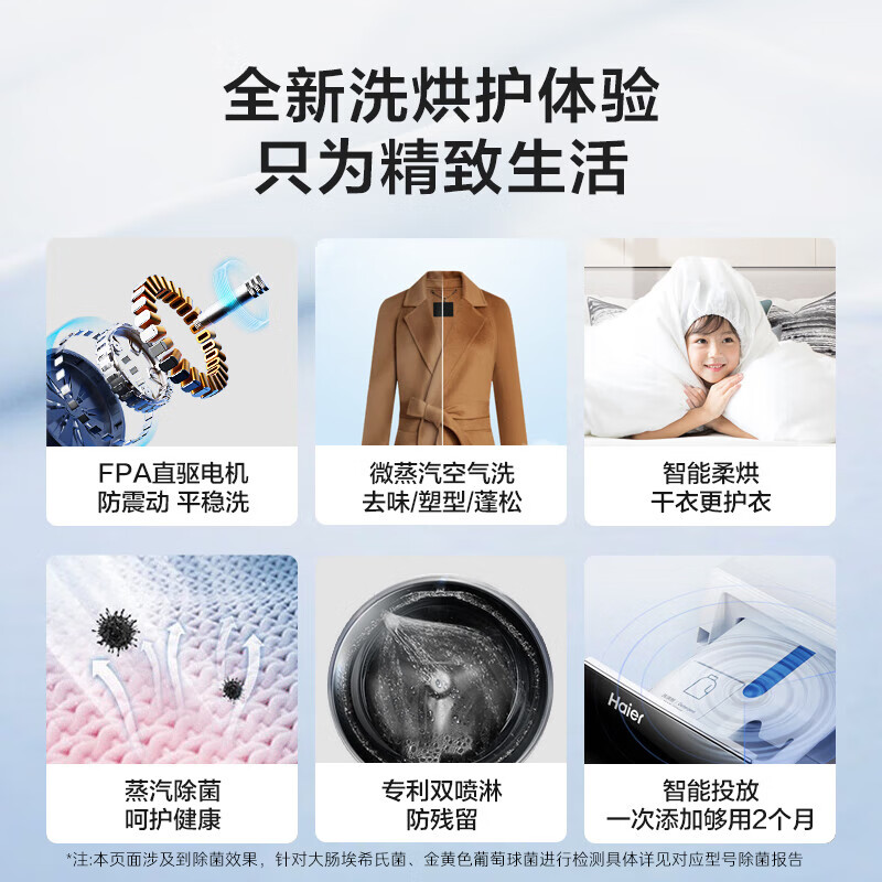海尔(Haier)滚筒洗衣机全自动洗烘一体机 直驱洗烘旗舰款 10公斤 直驱防震动 智能投放 以旧换新EG100HMATE71S价格:3399.00元!