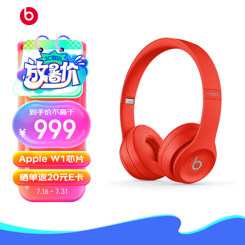 beats Beats Solo3 Wireless 头戴式 蓝牙无线耳机 手机耳机 游戏耳机 - 红色价格:999.00元!