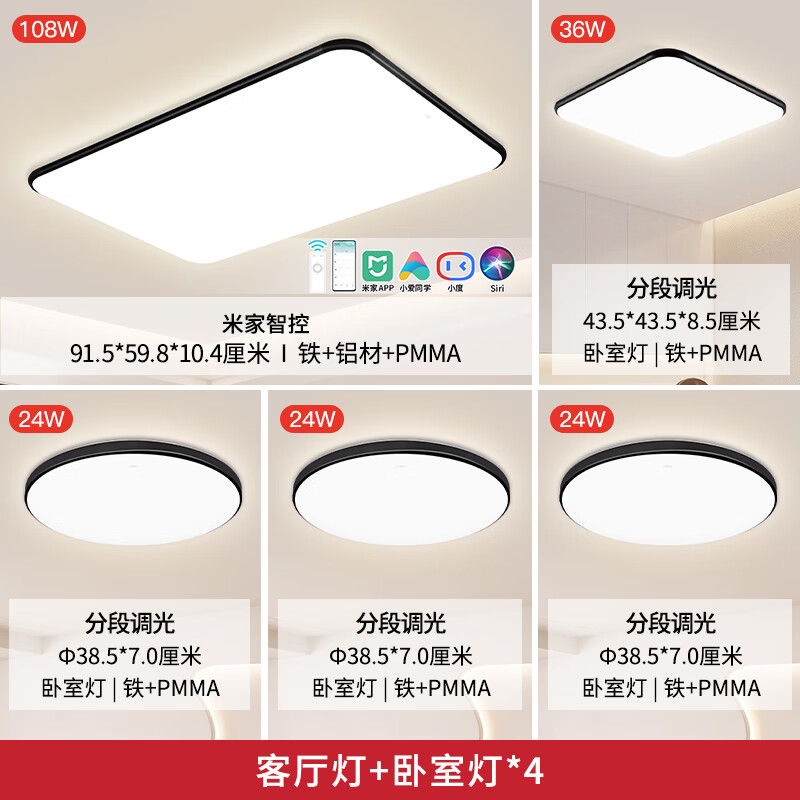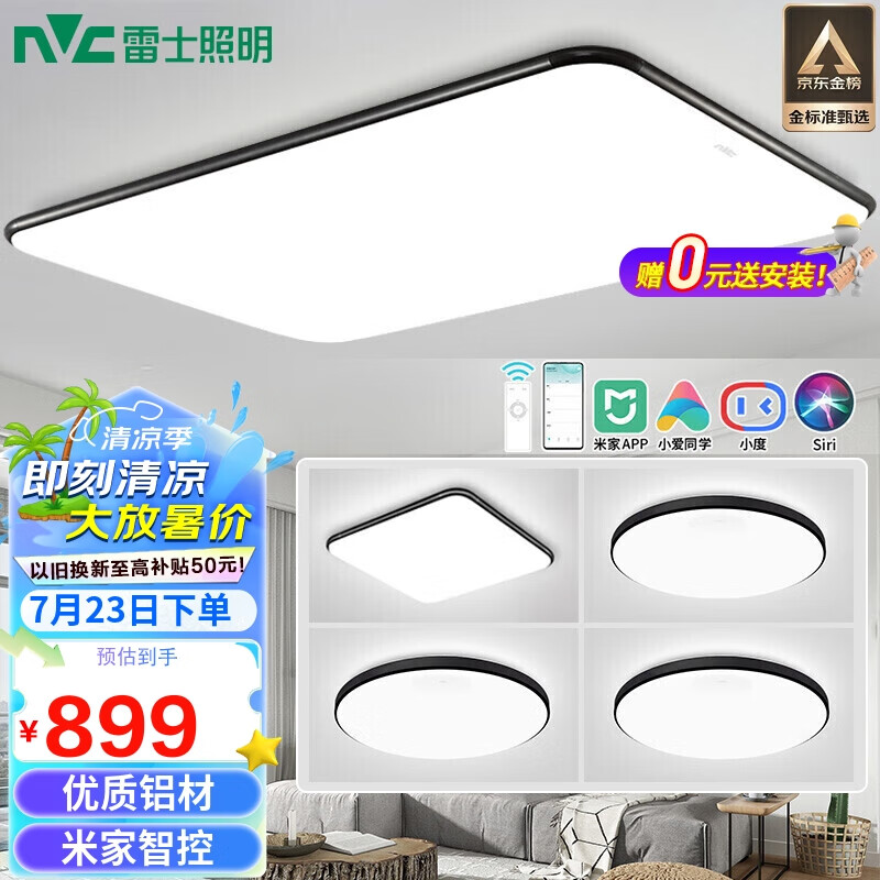雷士(NVC)吸顶灯客厅大灯米家智能现代简约风卧室led照明灯具套餐黑色极光S价格:1299.00元!