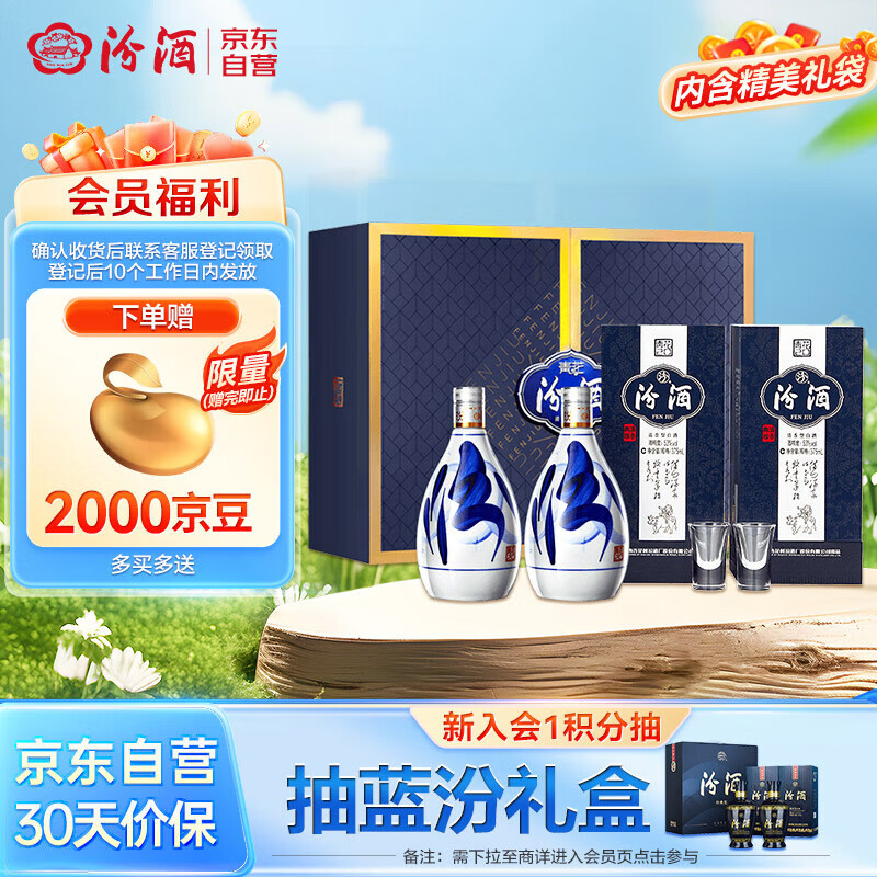 汾酒 青花20 清香型白酒 53度 375ml*2瓶礼盒装 商务送礼价格:710.60元!