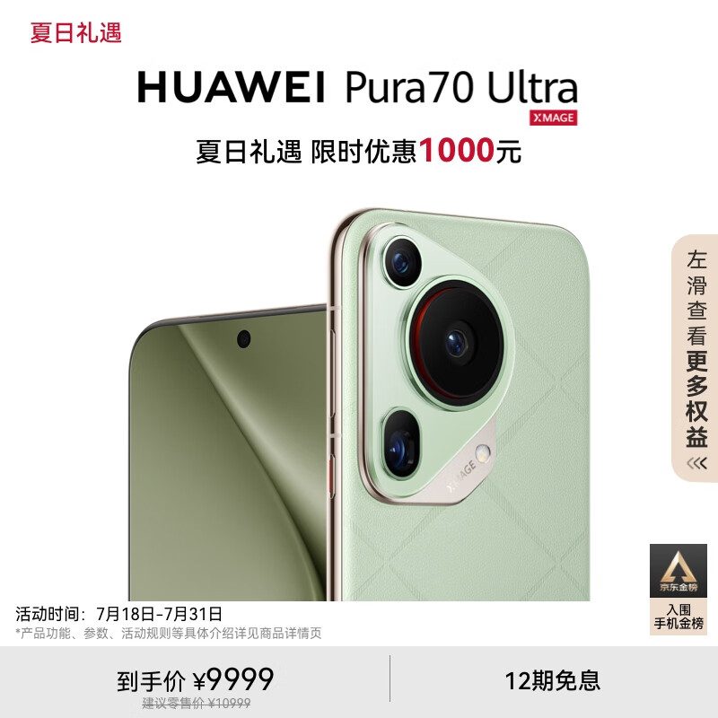 HUAWEI Pura 70 Ultra 香颂绿 16GB+1TB 超聚光伸缩摄像头 超高速风驰闪拍 华为P70智能手机价格:9999.00元!