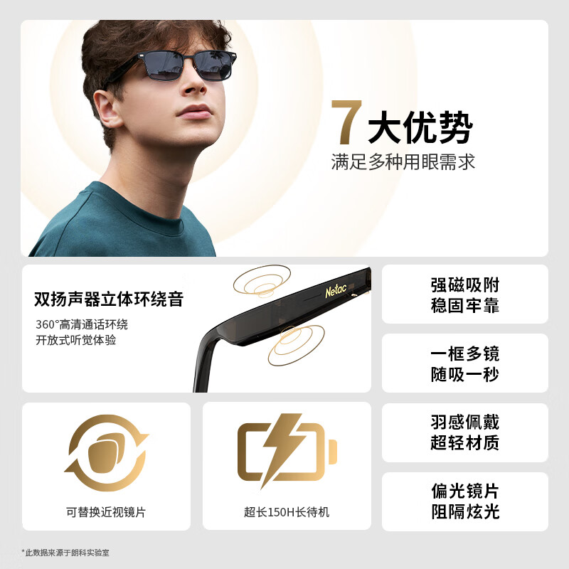朗科智能音频眼镜平视镜片 简约蓝牙耳机 IP64级防尘防水 高清通话 一镜3用一秒切换?LK-EW01A套装价格:699.00元!