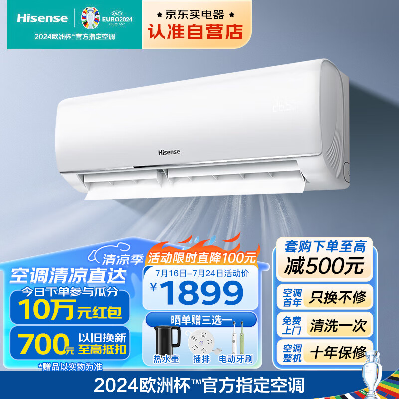 海信空调1.5匹挂机变频速冷暖大风量APP智控高温自清洁低噪舒适卧室壁挂式KFR-35GW/E290-X3以旧换新价格:1899.00元!