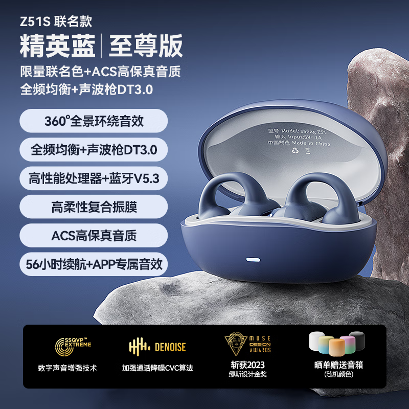 SANAGZ51【获国际设计金奖|送礼优选】 蓝牙耳机骨传导概念耳夹式运动跑步通话高端联名 精英蓝价格:349.00元!