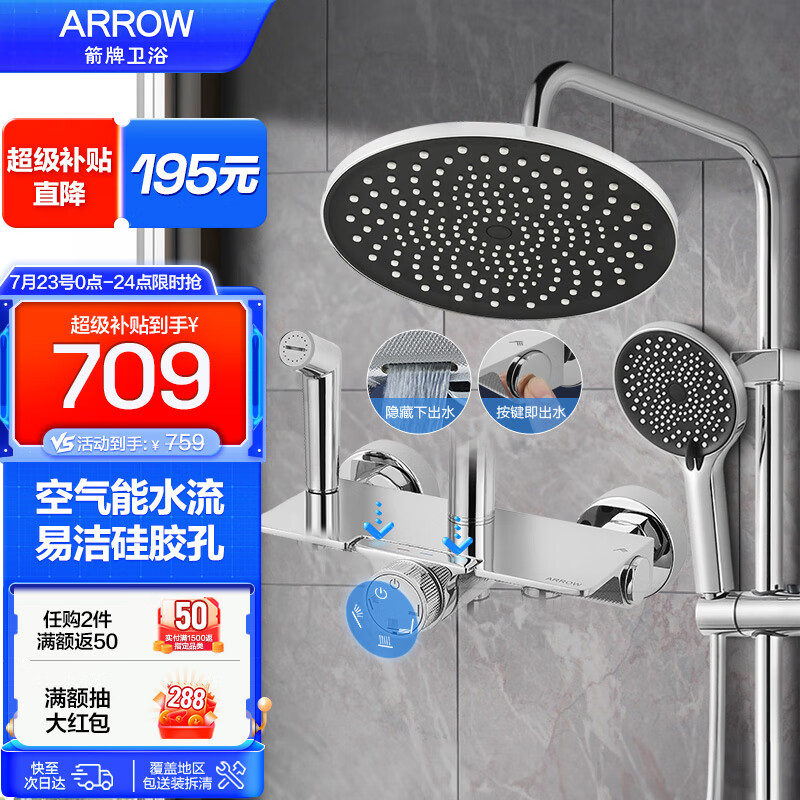 箭牌(ARROW)淋浴花洒套装 自洁淋浴喷头升级下出水 洗澡沐浴易洁手持顶喷 四功能空气能增压花洒34125CP价格:904.00元!