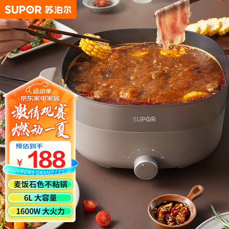 苏泊尔 SUPOR 电火锅 电煮锅 火锅专用锅 电炒锅 火锅锅 家用6L一体电锅多功能电热锅多用途锅H3030FK833价格:188.00元!