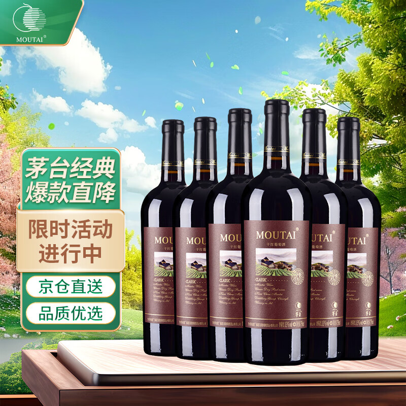 茅台(MOUTAI)经典棕标13度干红葡萄酒750ml*6整箱装价格:300.00元!