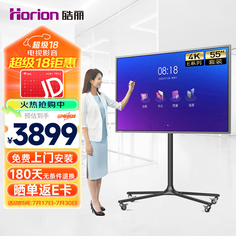 皓丽智能会议平板一体机触摸屏55英寸教学会议室显示屏移动大屏无线投影投屏4K高清移动套装价格:4649.00元!