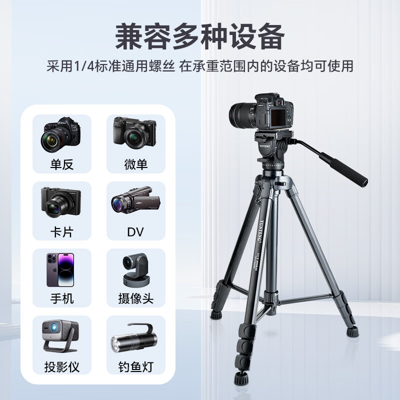 云腾 VCT-999专业大型三脚架2米高单反相机摄像机液压云台直播录像支架三角架 999三脚架【送手机夹】价格:335.00元!