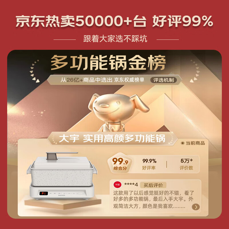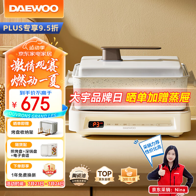 大宇(DAEWOO)多功能锅网红料理锅 家用电火锅电热炒锅电烧烤炉电蒸锅电煮锅不粘送礼S11PRO深锅盘+煎烤盘价格:675.00元!