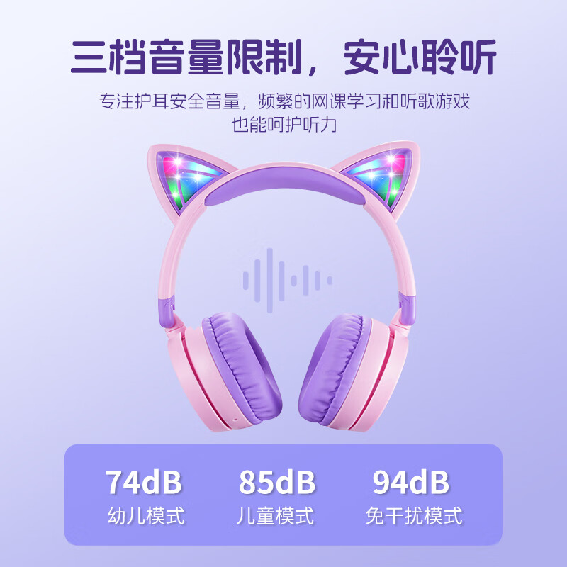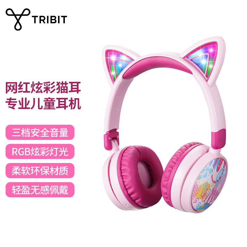 Tribit头戴式无线蓝牙耳机儿童耳机 学生耳机 学习耳机 低分贝 呵护孩子的耳朵 六一儿童节礼物价格:199.00元!