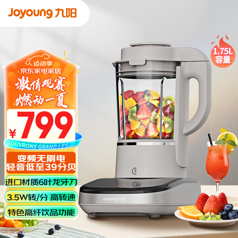 九阳(Joyoung)轻音破壁机 家用榨汁机豆浆机料理机 大容量 口感可调 多重降噪 变频轻音 1.75L大容量热烘除菌B3价格:799.00元!