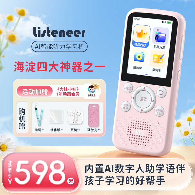 listeneer复读机倾听者K5听力宝智能听力学习机古诗词英语学习考研神器 水仙粉64G价格:738.00元!
