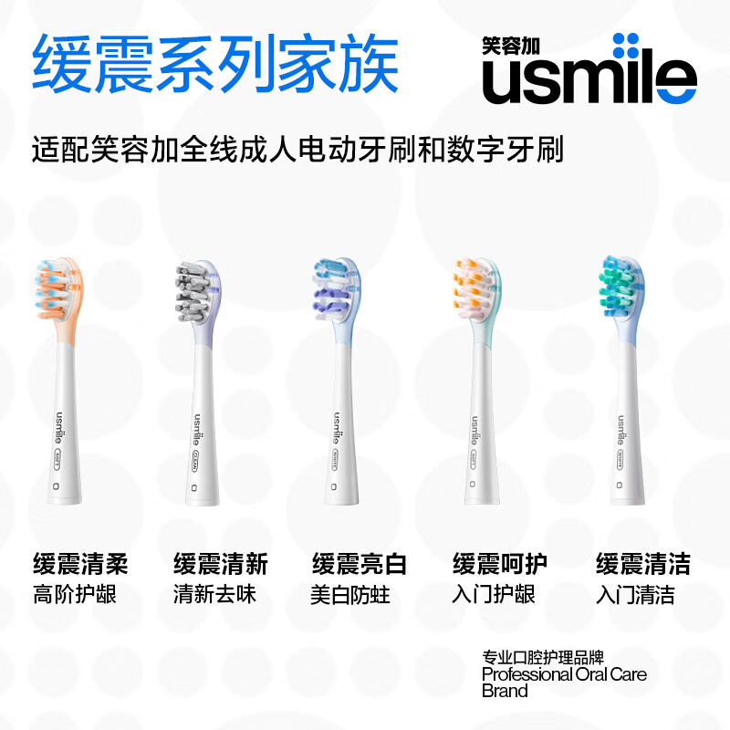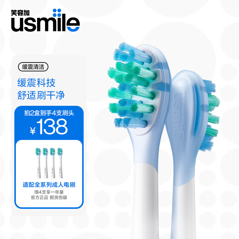 usmile笑容加 电动牙刷头 成人日常清洁 缓震清洁款-2支装 适配usmile成人牙刷价格:79.00元!