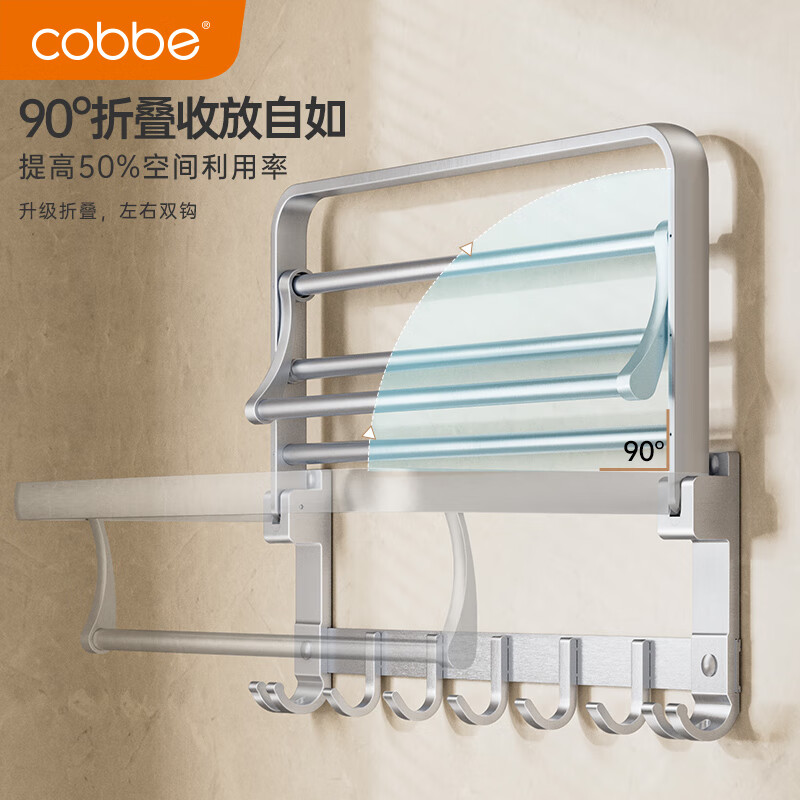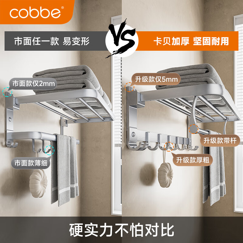 卡贝(cobbe)毛巾架免打孔太空铝浴室置物架卫生间挂件厕所浴巾架卫浴五金套装价格:178.00元!