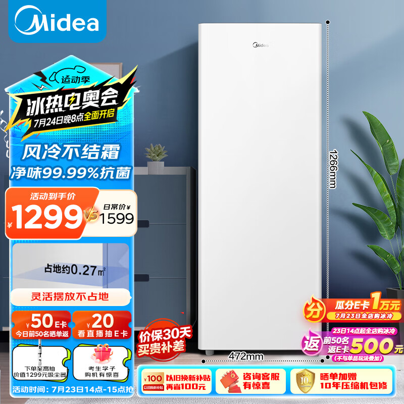 美的136升 风冷无霜立式家用冰柜 母乳冷藏冷冻转换柜抽屉式冷柜小型全冷冻一级能效冰箱 BD/BC-136WEM价格:1299.00元!