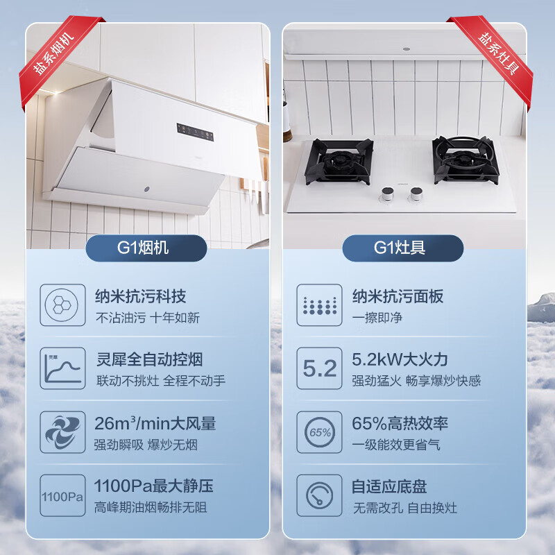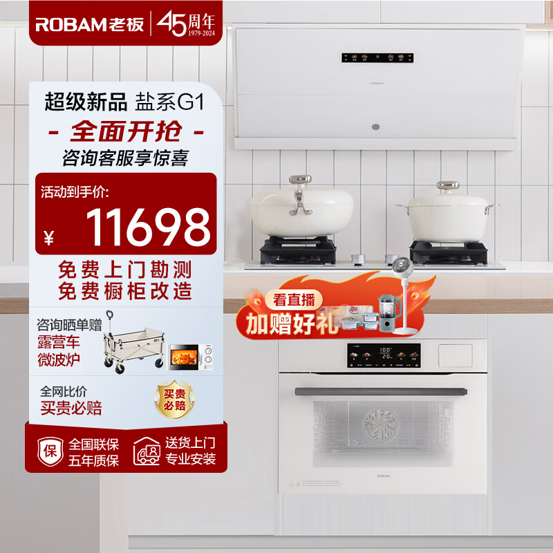老板(Robam)盐系G1海盐白厨房三件套烟灶蒸烤一体机抽油烟机灵犀家用大吸力26风量侧吸烟机蒸烤箱嵌入式价格:11698.00元!