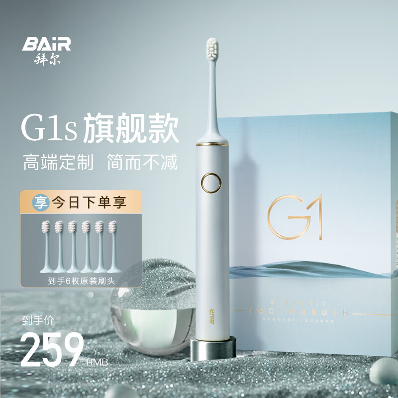 拜尔G1s 旗舰版电动牙刷成人充电智能声波美白软毛清洁护龈情侣款套装自动男女士送朋友 礼盒装价格:279.00元!