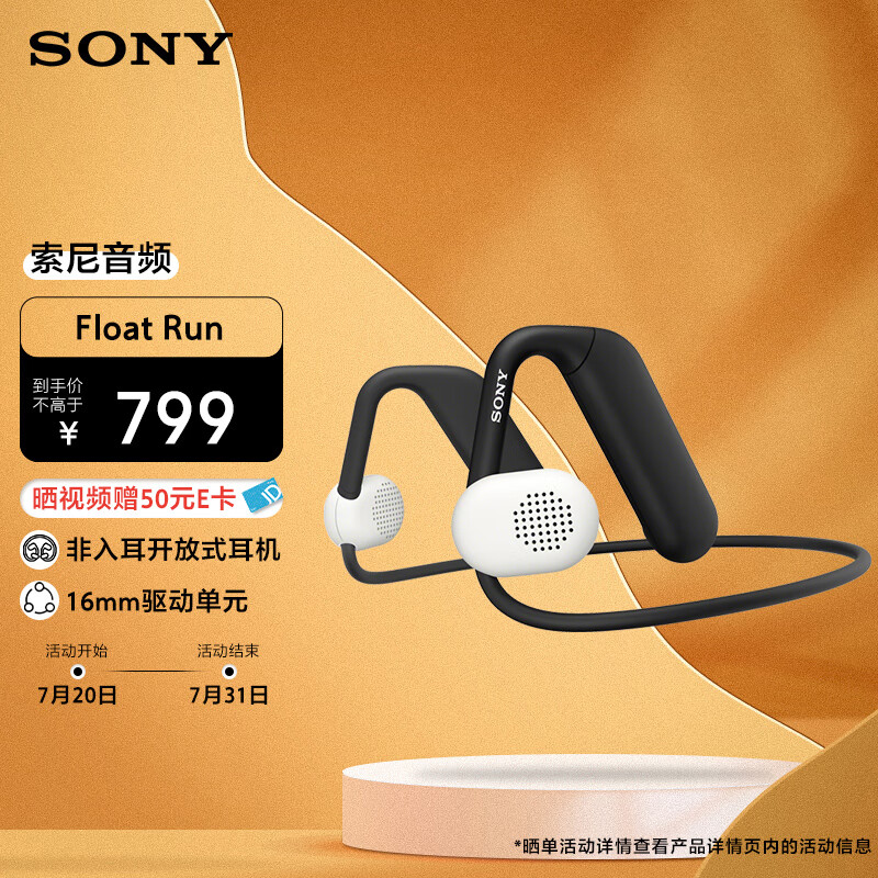 索尼(SONY)Float Run 非入耳开放式运动耳机 悬浮豆 好音质 佩戴稳固 长效续航 跑步健身防水抗汗 WI-OE610价格:799.00元!