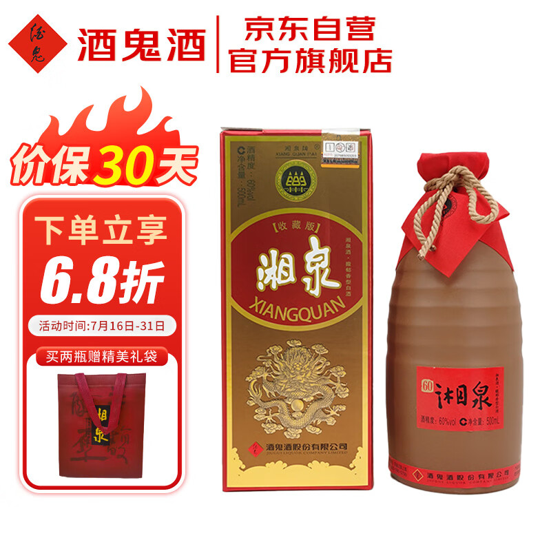 酒鬼湘泉原浆 60度 馥郁香型白酒 500ml *1瓶(新老包装随机发货)价格:109.00元!