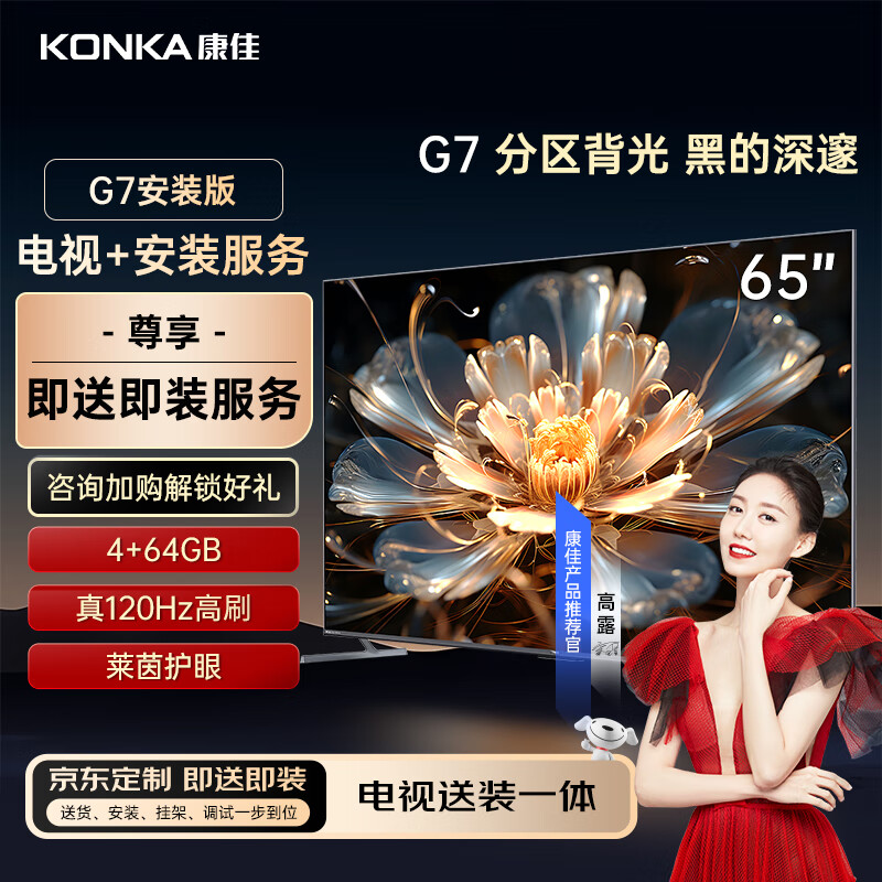 康佳电视 65G7 65英寸【包安装版】120Hz百级分区 液晶平板游戏电视机【服务套装】送装一体含挂架价格:2838.00元!