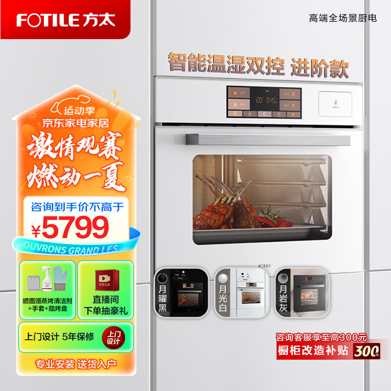 方太(FOTILE)彩膜屏款蒸烤箱一体机 月光白嵌入式家用 智能蒸烤炖炸四合一 手机智控55L大容量蒸箱烤箱02-EF1-W价格:5799.00元!
