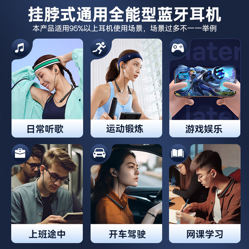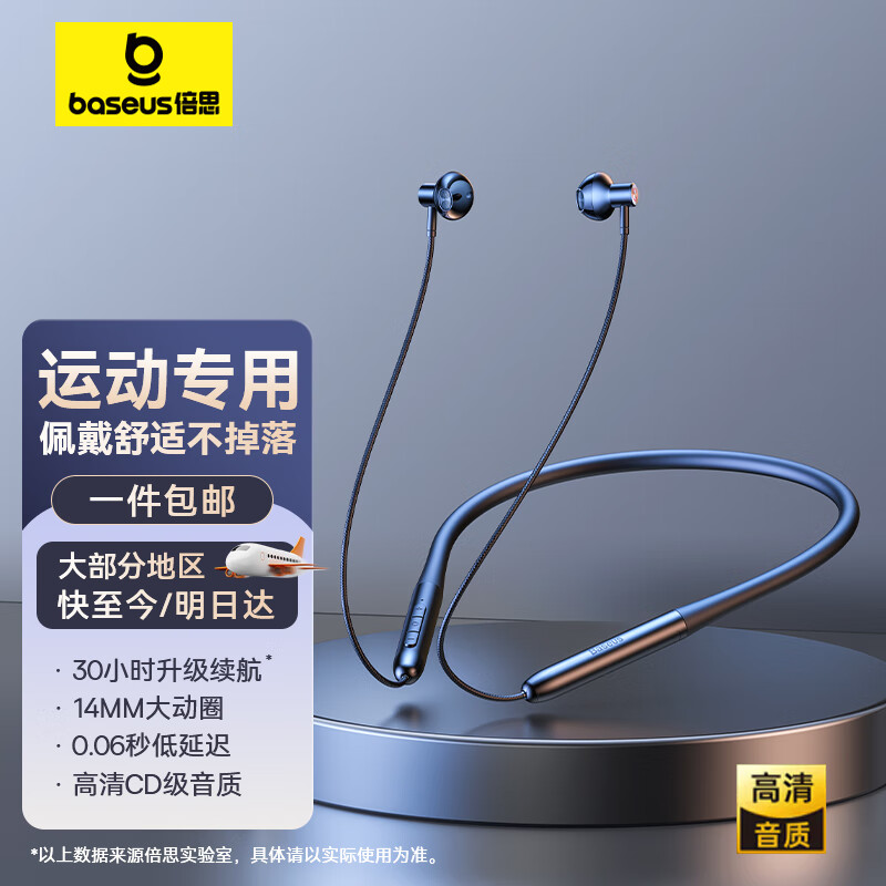 倍思 P1蓝牙耳机颈挂式耳机挂脖式运动耳机跑步真无线半入耳式游戏电竞高音质超长续航项圈挂颈耳机 黑价格:79.00元!