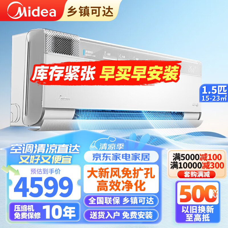 美的(Midea)新风空调1.5匹挂机 t3鲜净感空气机 新一级能效 无风感 壁挂式 卧室空调 KFR-35GW/T3 极地白智选价格:4599.00元!