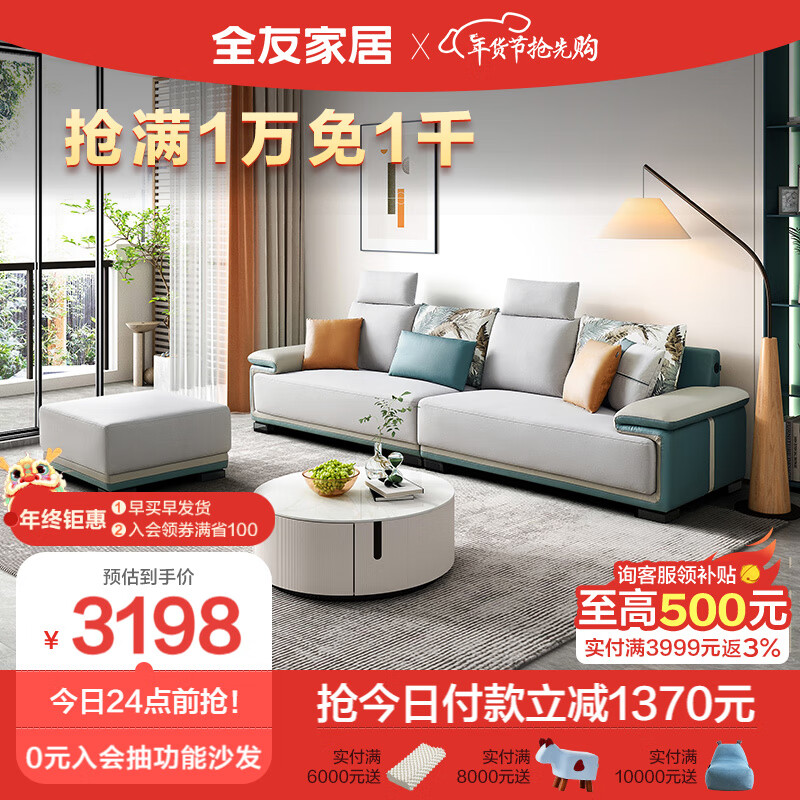 全友家居 沙发现代简约皮布沙发可拆洗科技布艺沙发客厅家具102702价格:4568.57元!