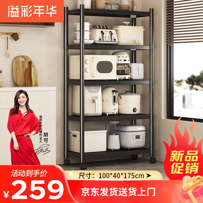 溢彩年华厨房置物架落地货架移动烤箱收纳储物层架子【100*40*175cm】6149价格:299.00元!