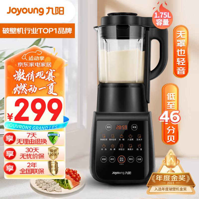 九阳(Joyoung)破壁机家用多功能 降噪预约加热豆浆机早餐机榨汁机辅食机1.75L大容量L18-Y915S价格:299.00元!