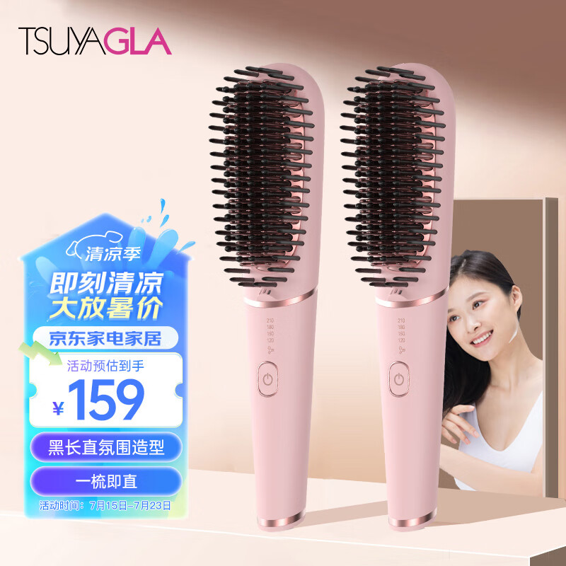 崔娅(TSUYAGLA)负离子直发梳直板夹蓬松夹板造型梳子 内扣卷发不伤发卷直两用直发器梳子神懒人器QS118粉色价格:179.00元!