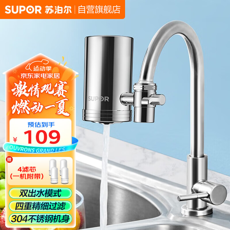 苏泊尔(SUPOR)净水器水龙头家用厨房自来水过滤器净水机滤芯可视化不锈钢C19 C19-4芯价格:119.00元!