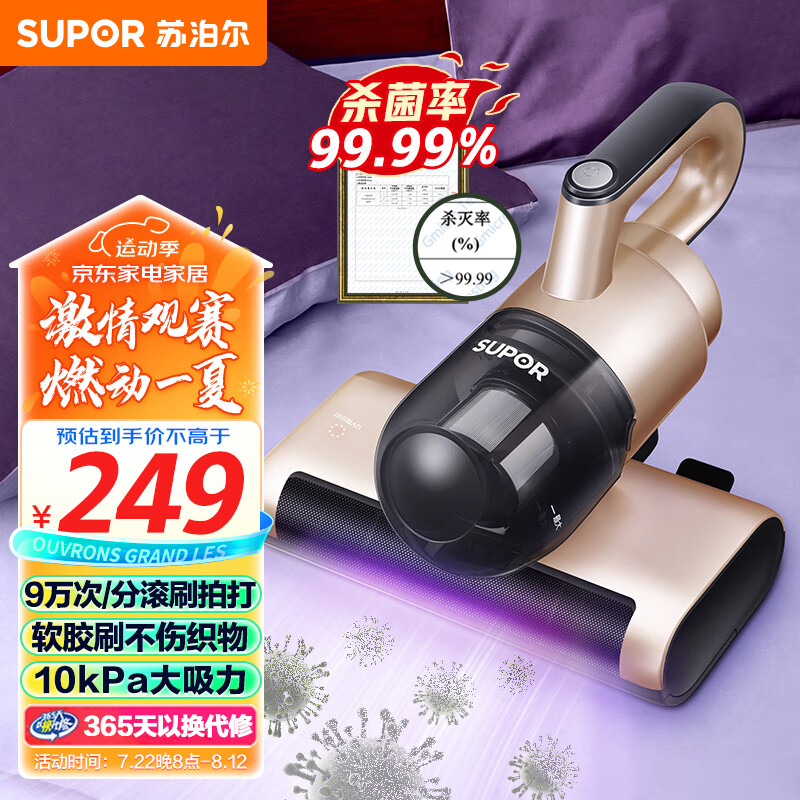 苏泊尔 (SUPOR )除螨仪手持床铺家用吸尘 滚刷拍打紫外线杀菌VCM12T价格:249.00元!