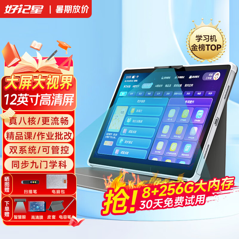 好记星【八仓速发】8+256G学习机平板电脑12英寸儿童小学生初中高中同步英语点读家教机上网课早教机节日 8+256G【八核+12英寸+全科+精品课+管控】价格:2798.00元!