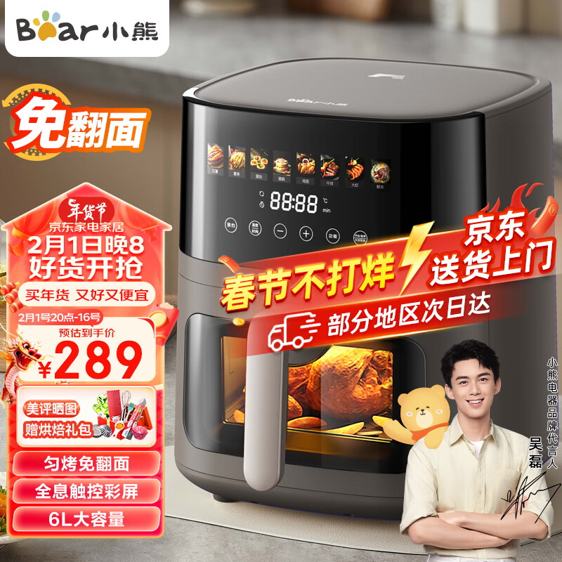 小熊(Bear)空气炸锅6升烤炸一体可视大容量全自动不用翻面家用排行榜多功能低脂微蒸汽嫩烤彩图智控QZG-P16J6价格:319.00元!