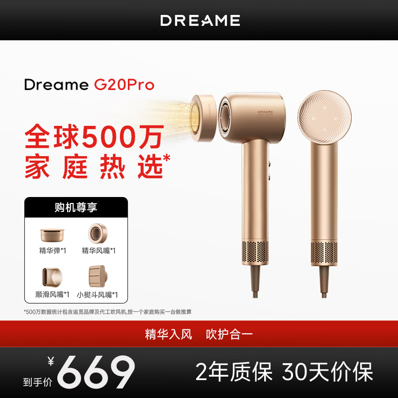 追觅韶光G20Pro高速吹风机家用 大功率负离子吹风筒 精华弹护发润发电吹风七夕情人节礼物 香槟金价格:969.00元!
