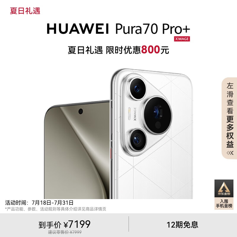 HUAWEI Pura 70 Pro+ 弦乐白 16GB+512GB 超高速风驰闪拍 超聚光微距长焦 双卫星通信 华为P70智能手机价格:7199.00元!